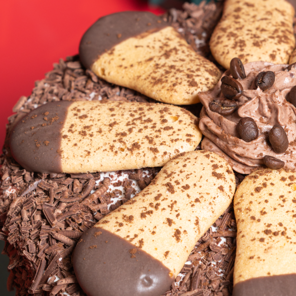 Torta suave rellena de suspiros, crema italiana y licor de café.